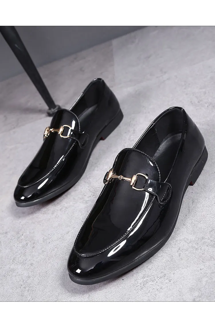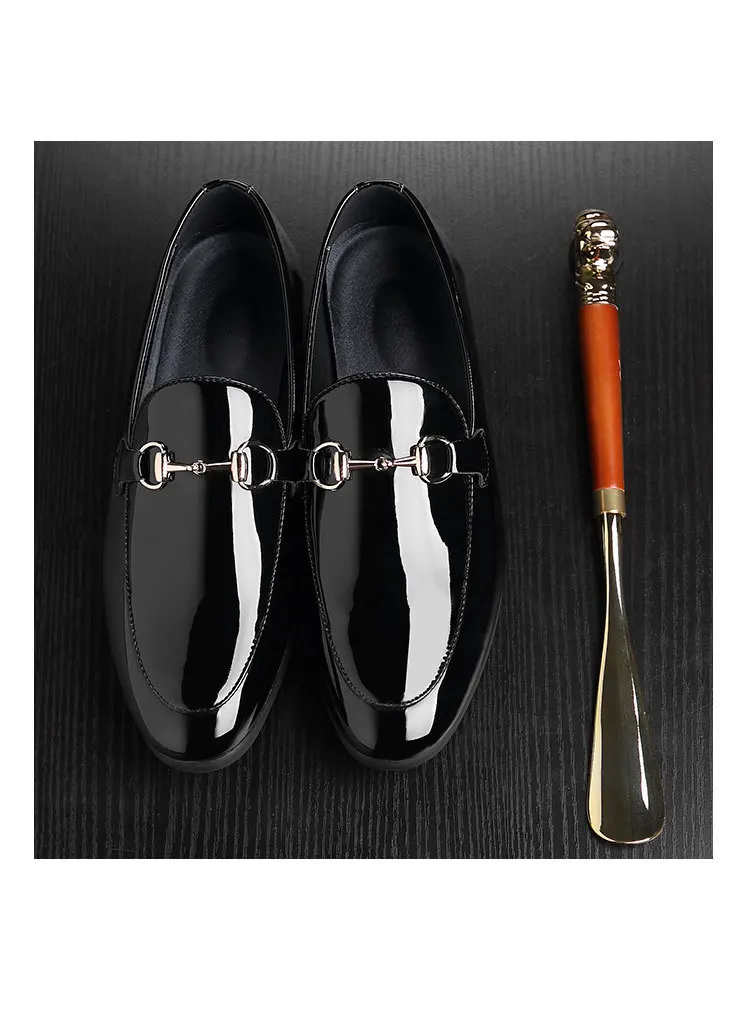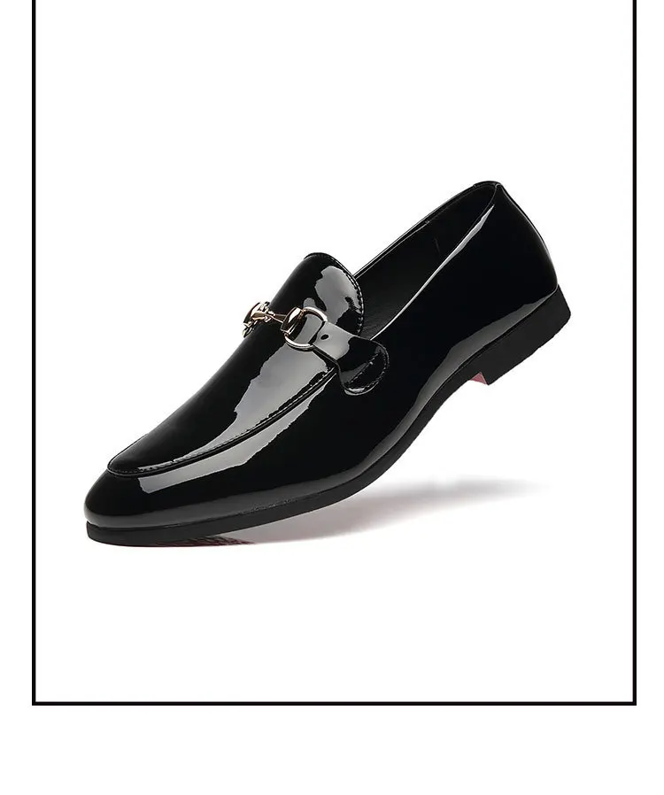 Mocassin En Cuir Noir Vernis Pour Costume De Mariage Homme
